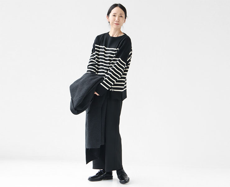ボーダーが映える大人のモノトーンシンプルコーデ。