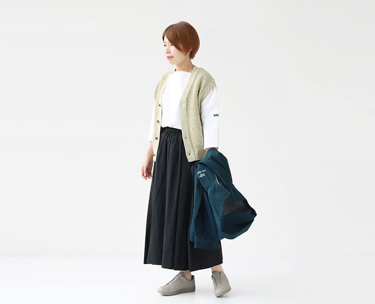 ウエストインもしやすく、着回しやすいアイテムです。