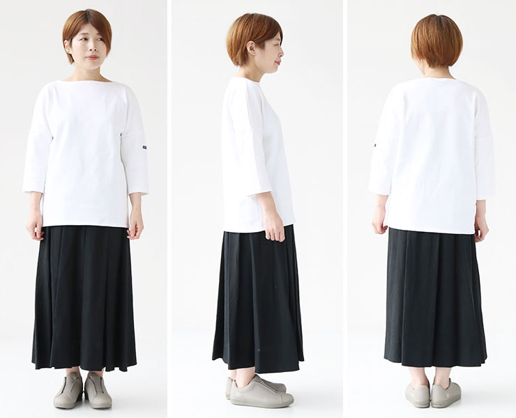 生地感や袖丈の違いなど、様々なバリエーションが登場しているセントジェームスのカットソーの中でも、上品かつ女性らしい印象ナンバーワンのアイテムです。