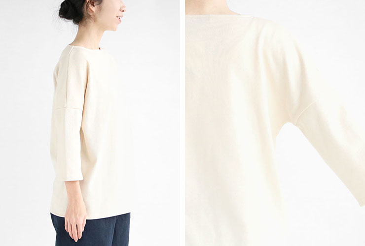 春から秋まで長く使え、季節の変わり目にはインナーとして活躍する『CRAZSLOU』七分袖ドロップショルダーカットソー