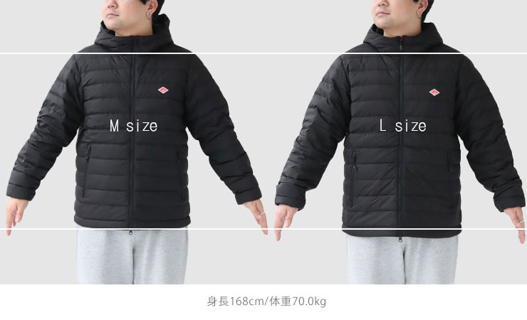 ミドルダウンはアウターとして着ることを想定しているため、インナーダウンに比べて少しゆとりのあるシルエットになっています。
