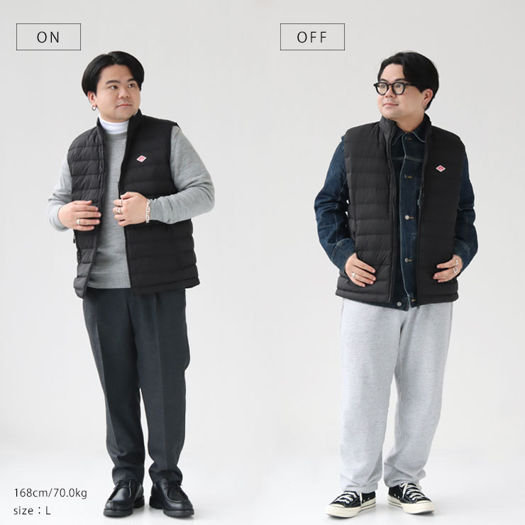 メンズでは、ジャケットタイプのダウンに加え、ミドルダウンベストも人気です。