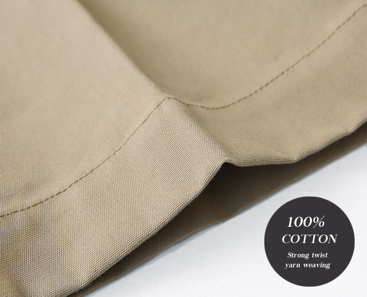 マットな表情でナイロンのような滑らかさとハリ感がありながら、扱いやすいコットン100%の生地を使用。
