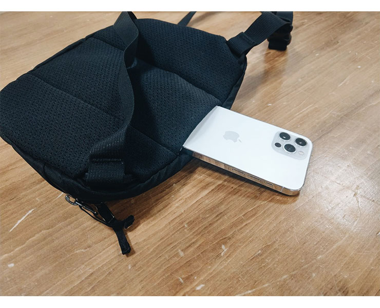 後ろの縦ポケット 6.1インチのスマートフォンでもすんなり収納することができます。