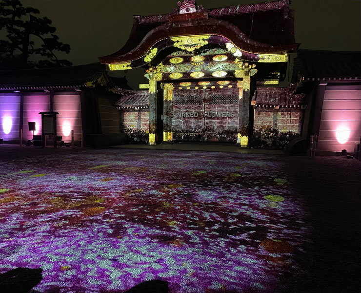 夜は桜のライトアップが開催されている二条城に。