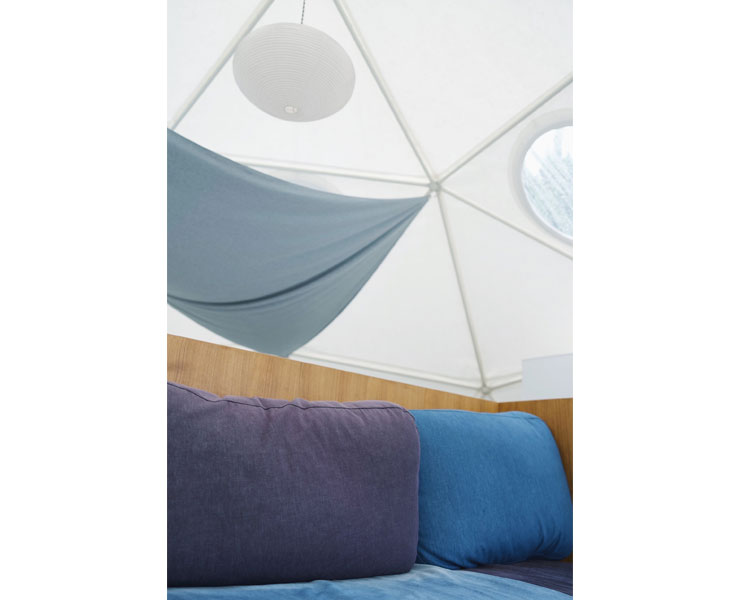 “denim hostel float”へ行き、デニムが使われたグランピングドームのお部屋に泊まりました