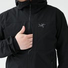 ARC'TERYX(アークテリクス) ガンマ フーディ メンズ。耐風性と耐水性に優れ、急な雨や寒さでも安心して使えるソフトシェルジャケット。高い耐久性がありながら非常に軽量なシェル素材を使用し、伸縮性と通気性にも優れ、ワークシーンやスポーツシーン、アウトドア・レジャーなど、アクティブに活動するシーンに最適です。レギュラーフィットで動きやすく、アウターとしてはもちろん、重ね着してももたつかず、寒い時期にはミドルレイヤーとしても着用可能。ストレッチガゼット入りの袖口は程よいフィット感で冷気の侵入を軽減。前後差をつけたドロップバックヘムは、ドローコードでシルエットの調整が可能。ストームフードは1回引くだけで素早く調節でき、帽子やヘルメットの上からも被ることができます。ジッパー付きハンドポケット2つ、胸ポケット2つを装備。シンプルなデザインなのでどんなファッションにも合わせやすく、タウンユースもしやすいアイテムです。