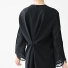 Ballsey(ボールジィ)のドライダブルクロス レースコンビワンピース。薄手で軽く、ポリウレタンの糸を軸にすることで伸縮性に優れ、着心地の良さも両立。シワになりにくく、デイリー使いしやすいのもポイントです。きゅっと詰まったコンパクトなネックラインと膝の隠れる着丈がクラシカルな印象に。繊細なレーススリーブやバックに施したタックにより、ほど良くウエストシェイプの効いたシルエットに女性らしいフェミニンな雰囲気を演出。一枚でさらりと着用したり、同素材のジャケット(商品番号11-07-01-07151)とセットで着こなしたりと、オケージョンやパーティーシーンにも活躍してくれる華やかな表情のアイテムです。着用モデル:身長160cm/体重47kg