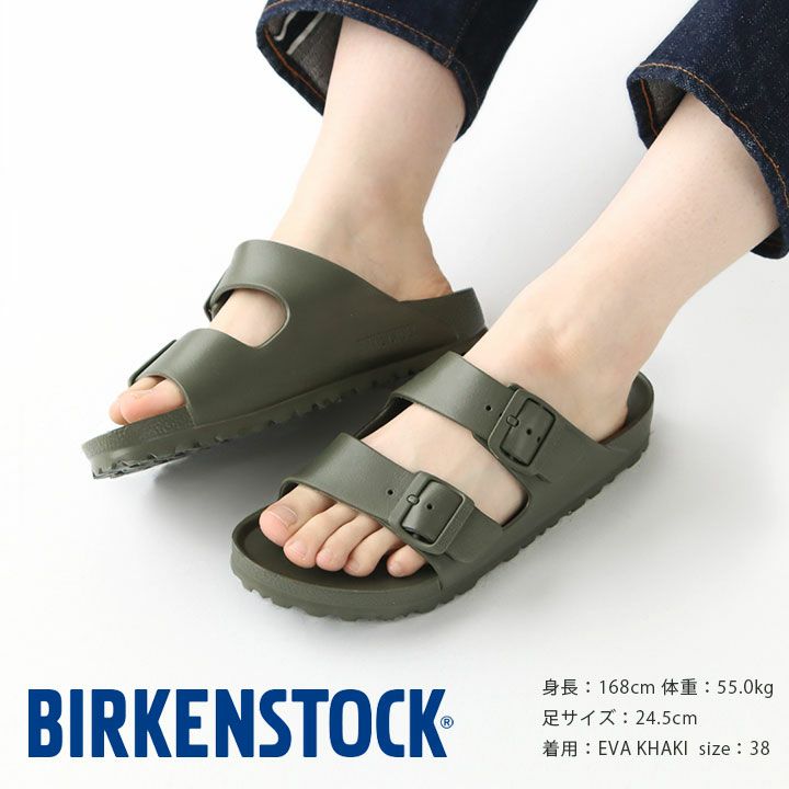BIRKENSTOCK(ビルケンシュトック)の定番モデルArizonaのEVA素材。EVAは、耐久耐水性に優れていて、濡れた場所でも滑りにくいことが特徴です。また、汚れても水洗いできるのでお手入れも簡単です。お肌に優しいこの超軽量ソールが、ビルケンシュトックならではの快適な履き心地を叶えます。海やプール、フェスやアウトドアなど様々なシーンで活躍してくれる万能サンダル。太めのベルトがカジュアルな装いに仕上げてくれます。着用モデル:身長168cm/普段のサイズ24.5cm(38サイズ着用)