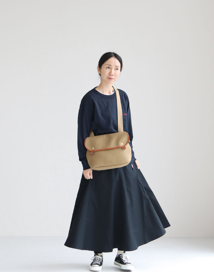 Brady(ブレディ)の定番ショルダーバッグ“AVON”。お財布・携帯などすっぽりと入るデイリーに使いやすいサイズ感に、スナップボタンで開閉しやすいので、タウンユースとして人気のバッグです。バックサイドに付いた幅広のストラップがたすき掛けしやすく、スナップボタンでの開閉も便利。 フラップ部分はブライドルレザーで縁取りされ、さらにダブルステッチで縫い上げられているため、とても丈夫なつくりです。男女問わずユニセックスでご使用いただけ、使い込むほどに味わいが増していき長くご愛用いただけます。着用モデル:身長160cm/体重47kg
