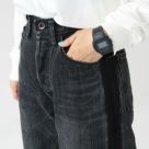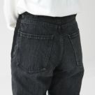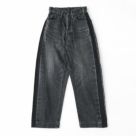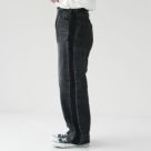 穿くほどに味わい深くなる経年変化を楽しめるBRU NA BOINNE(ブルーナボイン)のマーチデニムブラック。サイドへタキシードパンツの側章をイメージしたサイドラインが、コーディネートに程よくアクセントを効かせてくれます。ハイウエストで、ストんと綺麗に落ちるワイドなシルエットは、ジャストでもワンサイズアップでもお好みのサイズ感で楽しめます。前ポケットの裏地には、てんとう虫のプリントが施されています。着用モデル:身長147cm/体重42kg(XSサイズ着用)
