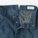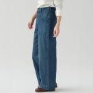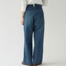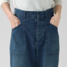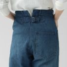chimala(チマラ)のデニムパンツ。柔らかく軽いタッチで穿きやすいライトオンスのセルビッジデニム。腰回りのシルエットがタイトになりやすいネイビーパンツですが、ウエストはゆったりで股上も深めでリラクシング。ウエスト後方にある切れ込みはデザイン性と動きやすさのポイントになっています。フロント部分のポケットパターンもデザイン性を活かしつつ、すっきりとフラットな仕上がり。程よい太さと生地の柔らかさが裾にかけて綺麗な縦ライン実現し、かっこよくワイドに穿けるシルエットがいろんなテイストと組み合わせてデニムスタイルを楽しんでいただけます。