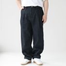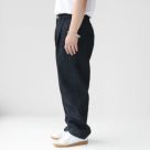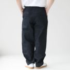 EEL Products(イール プロダクツ)のロンドデニム。シンプルで落ち着いた雰囲気のキレイめなデニムスラックス。14オンスのデニムを使用したハリとコシのある生地感。程よい生地の厚みで、通年穿いていただけます。股下はガゼットクロッチ仕様で可動域が広く動きやすく、立体感のあるシルエットに見せてくれます。深めにタックが入っており、ヒップとワタリにゆとりを持たせつつ、裾にかけて徐々にテーパードのかかった好バランスなシルエットです。靴にワンクッションさせたり、ロールアップをしてスッキリさせたりと着こなし方で雰囲気の変わるパンツなので、カジュアルからキレイめまで幅広いスタイリングにマッチする一本。着用モデル:身長168cm/体重70kg(Mサイズ着用)