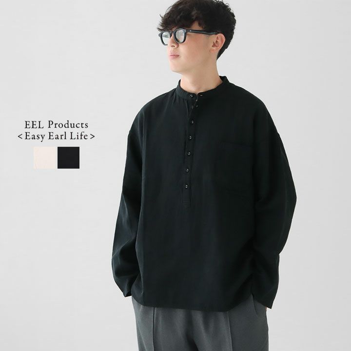 艶のあるツイルとガーゼのように柔らかな二重織り生地を使用。ゆったりドロップショルダーのプルオーバーで、シャツとカットソーの魅力を兼ね備えた一着です。