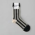 ビーズとレースを思わせるクラシカルなデザインのソックス。シルケット綿糸を使用し、毛羽を抑えた程よい厚みで快適な履き心地。落ち着いた配色で幅広いコーデに映える一足です。