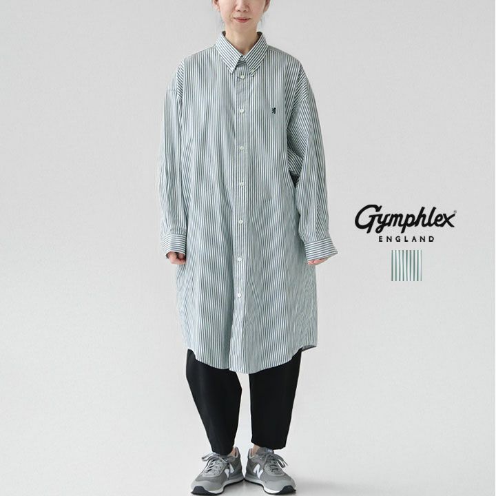 Gymphlex ボタンダウン ワイドシャツワンピース(GRN/WHST)は、爽やかなグリーンとホワイトのストライプ柄が特徴のロングシャツワンピースです。ゆったりとしたワイドシルエットで、動きやすさとリラックス感を両立。カジュアルなデイリーコーデから、レイヤードスタイルまで幅広く活躍します。サイズ14(モデル:160cm/47kg)で、軽やかなコットン素材が春夏にぴったり。Gymphlexならではのシンプルで上質なデザインをお楽しみください。