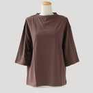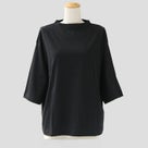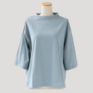 手紡ぎの上質なピマコットンを使用した、なめらかな肌触りの七分袖Tシャツ。マーセライズド加工によるシルキーな光沢と、適度な厚みが魅力。浅めのボトルネックとドロップショルダー、ゆったりとしたサイズ感で、抜け感のある上品カジュアルを演出します。大人のワードローブにぴったりの一枚。