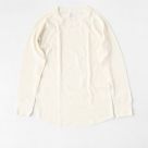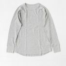 伸縮性にに優れ肌馴染みの良いコットン混素材のHANES(ヘインズ)サーマルクルーネックTシャツ。薄手で体に心地よくフィット、脇と袖はフラットシーマ(縫い代がフラット)でごろつかず、着心地◎ネックライン・袖口とリブ仕様になっているのでインナーとしてももちろん、メイントップスにもサマになるアイテムです。衿ネームは気になる背中の違和感を解消したタグレス仕様。コストパフォーマンスに優れ、色違いで揃えたくなるカットソーです。