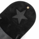 IL BISONTE(イルビゾンテ)のレザーショルダーバッグ。丸みのあるフォルムでフェミニンなエッセンスを添えたショルダーバッグです。本体に直接ベルトを通し、きゅっと結んで留めつけた仕様。一見シンプルで上品シックなのに、星形のホールやフラップ裏側にスターモチーフをあしらった遊び心のあるデザインが大人女子のお洒落心をさらにくすぐります。