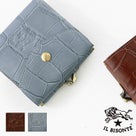 IL BISONTE(イルビゾンテ)のクロコエンボスドレザーのウォレット。がま口タイプの小銭入れを外側に配し、フラップはスナップボタンで開閉。内部には札入れとカード入れをバランスよく配し、外装にある小銭入れはがま口ならではの取り出しやすさで使い勝手も抜群です。クロコダイルの型押しを施し、上品なレザーの光沢感が魅力的で、ゴールドの金具部分がリュクスな雰囲気を演出しています。