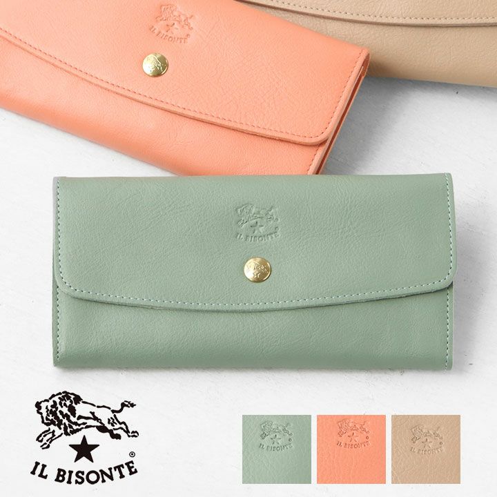 IL BISONTE(イルビゾンテ)のロングウォレット。財布の構造は、スナップボタンで開け閉めする仕様。ファスナー付きの小銭スペース、充実のカード入れ、中が見やすく整理しやすいデザインです。サイドにはマチを設けており、中身が見渡しやすく取り出しやすいのもポイントです。今季のイルビゾンテ秋冬コレクションのテーマは、食の旅。その豊かさと美しい色合いにインスピレーションを得て、新色レザーに映し出しました。トレンド感漂うくすんだオレンジの「アプリコット」は、ヴィヴィッドになりがちなオレンジを、シックで落ち着いたカラーに。「アーティチョーク」はセージより軽やか、オリーブよりライトな、独特のミドルグリーンカラー。そして「カフェラテ」は赤みを抑えることで生まれた、クールでクリアなタンカラーです。