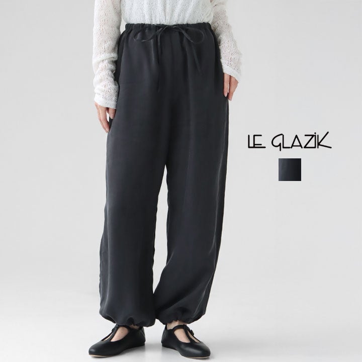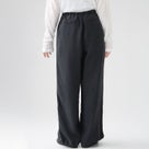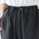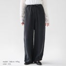 キュプラのとろみと微起毛のやわらかな質感が心地よい一本。ウエストゴムとドローコードで楽に穿け、裾も紐で絞れる仕様でシルエットの変化が楽しめます。ワイドでも重く見えず、トップスを選ばず日常からお出かけまで幅広く活躍します。