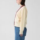 清涼感のある強撚コットン糸をスレッド編みに仕上げた、ドライタッチなニットカーディガン。程よいハリ感としっかりとした手持ち感があり、まだ肌寒い時期から初夏まで長く活躍します。ゆとりのあるボリュームシルエットとドロップショルダーがリラックスムードを演出。Tシャツやワンピースの上に軽く羽織るのはもちろん、フロントを閉じてプルオーバー風に着るのもおすすめです。