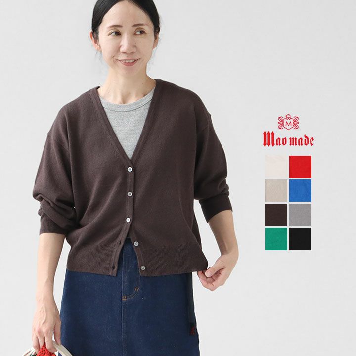 "mao made(マオメイド)"。シーズンごとにバランス感をうまくとりいれ、「ナチュラルでリラックスしつつもフェミニンな雰囲気を持ち続けたい」という大人の女性のためのブランド。元々がニットメーカーなので、ニットを知り尽くしたからこその素材感や仕上がりが特徴です。様々なシーンで活躍し、使いやすいデイリーウエアーなど自然でリラックスできる、心地が良いアイテムを多く展開しています。