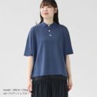 mao made リネンコットン ワイド ニットポロ アッシュブルー 168cm 女性モデル 着用イメージ