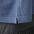 mao made リネンコットン ワイド ニットポロ アッシュブルー サイドスリット 裾部分 mao made リネンコットン ワイド ニットポロ アッシュブルー 襟の置き画像 物画像 mao made リネンコットン ワイド ニットポロ アッシュブルー 生地感 風合い