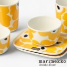marimekko(マリメッコ)のUnikko柄ボウル。スープやデザートを入れたり、和え物を盛り付けたりと、程よい深さでふちの立ち上がりがしっかりとあるので、使い勝手の良いサイズのボウルです。晴れやかなイエローとネイビーをメインカラーにしたウニッコのホームコレクション。同柄の食器をセットで揃えるのもおすすめです。