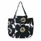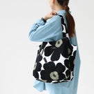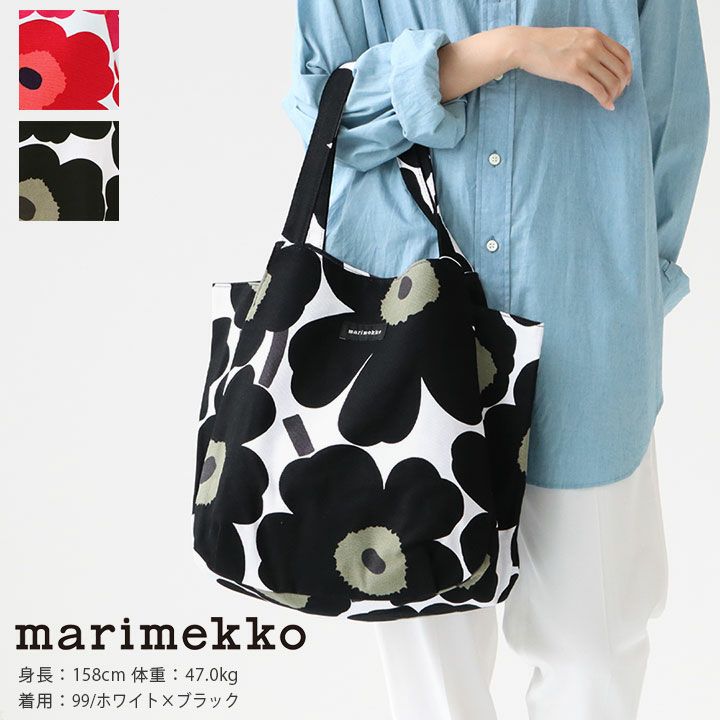 marimekko(マリメッコ)のウニッコトートバック。持ち手の長さが十分な肩に掛けやすいウニッコ柄のバッグです。サイドのマチを内側に折りこむとAラインのスマートな形になるので荷物の多さやスタイリングによって形を変えることができるデザインです。通勤バッグやデイリーにも使いやすく、たっぷりと荷物の入るサイズ感。間口にはマグネットがあり、中はファスナーの付いた内ポケット付き、バッグの内側はナイロンの裏地がついています。ワンポイント欲しい時に大活躍のウニッコ柄は甘さのエッセンスを程よく足してくれそうです。着用モデル:身長158cm/体重47kg