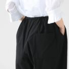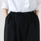 ウエストはリラックス感のあるゴムに加え、ドローストリング仕様で調節可能。