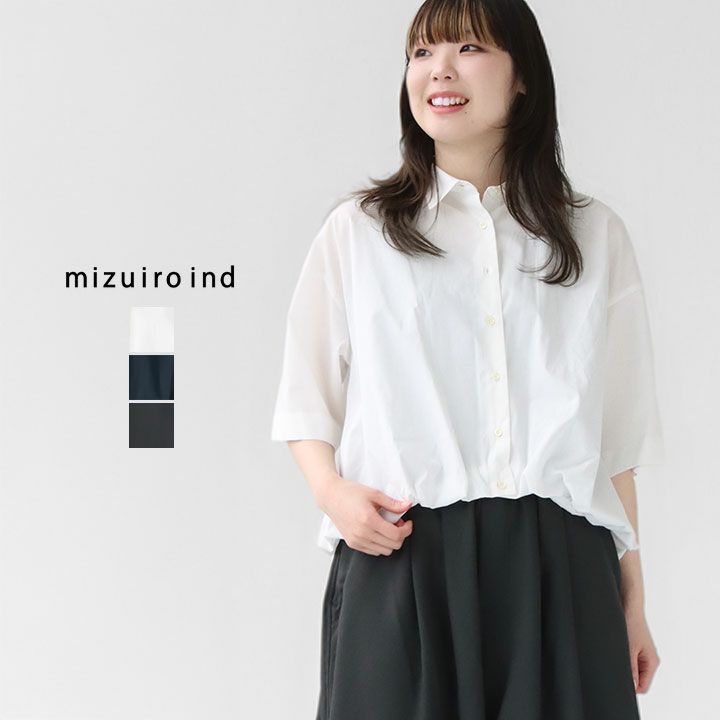 ふんわりと立体的なシルエットで着るだけで様になる。mizuiro ind(ミズイロインド)のバルーンシャツは、裾のギャザーでふくらみを持たせたデザインが特徴。しなやかさがあり、上品な表情を持つコットン素材が、すっきりとしたショート丈や肘が隠れる半袖を引き立て、シンプルながら存在感のあるスタイルを完成させます。