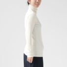 コットンテレコ タートルネック オフホワイト着用 シンプルで上品な正面シルエット 長袖トップス