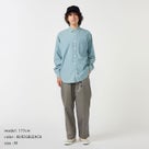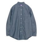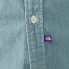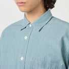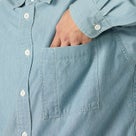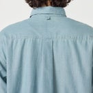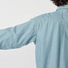 リサイクルポリエステル芯にオーガニックコットン糸を巻いた、インディゴシャンブレー素材を使用したレギュラーカラーシャツ。ワークテイストを感じさせながらも、細番手糸で運針を細かく入れることで、粗さのない洗練された表情に仕上げています。 肩幅と身幅に程よくゆとりを持たせたシルエットで、快適な着心地と大人らしいバランスを両立。第1ボタンには着脱しやすいロゴドットボタンを採用し、ヨークや前立て裏のさりげないブランドディテールが上質感を高めています。