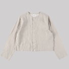 軽やかな40番手リネンをタンブラー加工した一枚仕立てで、柔らかく肌離れの良い着心地。ゆとりあるシルエットで羽織りにもシャツ使いにも対応し、日常に馴染む一着。