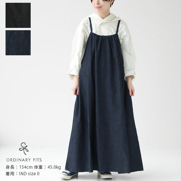 Ordinary fits(オーディナリーフィッツ)のストラップドレス。エプロンをイメージしたデニムワンピース。コットン100%のライトオンスデニム生地を使用し、さらっとした肌触りで、軽い着心地が特徴。バックリボンを絞ることでサイズ調整ができ、後ろ姿にアクセントをもたらし、トレンド感のある着こなしを演出してくれます。また3段階で調整できるストラップを施し、丈の長さをお好みの位置に調整できます。落ち感のあるふっくらと丸みのあるシルエットで、着心地だけでなく着こなしのアレンジも楽しめる一着です。着用モデル:身長154cm/体重45kg