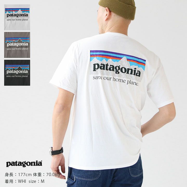 patagonia(パタゴニア) のメンズ・P-6ミッション・オーガニック・Tシャツ。タウンユースに最適な4.6オンス・オーガニックコットン生地を使用。柔らかく着心地の良い一枚です。一般的なコットン製Tシャツに比べ水の使用量と二酸化炭素排出量を削減。フェアトレード・サーティファイドの縫製を採用。