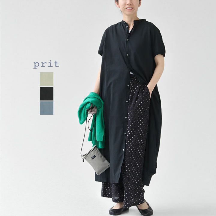 [正規取扱店][送料無料] PRIT(プリット) 100/2甘ボイル スリーブレススタンドカラーシャツワンピース(P82513)