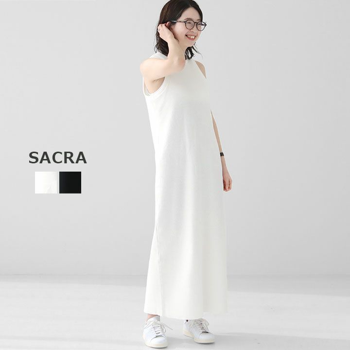 ノースリーブなので、レイヤードしやすいのがおすすめポイント!春にはジャケットを、夏にはシャツやジレなど。シンプルなデザインなので涼しくお洒落が叶う一着です。
