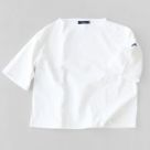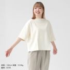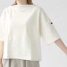 ウエッソン生地を使用した、ドロップショルダーの五分袖Tシャツ。程よい厚みとハリ感があり、体のラインを拾いにくく安心感のある着心地です。肘下まで届く袖丈が、自然に大人らしい印象に。デニムからきれいめパンツまで幅広く合わせやすく、日常のコーディネートに活躍します。