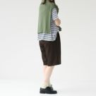 クライスラーパンツをベースにしたSHINZONE(シンゾーン)のクライスラーショーツ。マーベルト仕様をそのままに縫製をした贅沢な一着です。滑らかな肌触りとドライな質感が特徴のポリエステル素材を使用。さっと軽い穿き心地で、蒸し暑い日でも快適に着用していただけます。上品さ漂うウールライクな素材感で、春夏のショーツスタイルはもちろん、秋口にはスウェットやニットとも相性◎カジュアルな着こなしが多くなるこれからの季節に重宝するキレイめショーツです。自宅で洗濯ができるのも嬉しいポイント。同素材のクライスラージャケット(商品番号:23SMSJK02)や、ビッグベスト(商品番号:23SMSJK03)とセットアップでもお使いいただけます。