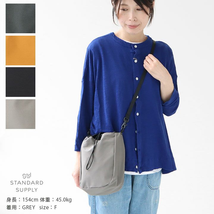 STANDARD SUPPLY(スタンダードサプライ)のチョークショルダー。クライミングなどで使用されているチョークバッグをベースに、素材やサイズのアレンジを加えたショルダーバッグです。ショルダーは取り外し、調節が可能。ちょっとそこまでのお買い物や、必需品はすぐに出し入れしたいなど、デイリーから様々なシーンで活躍するアイテムです。着用モデル:身長154cm/体重45kg