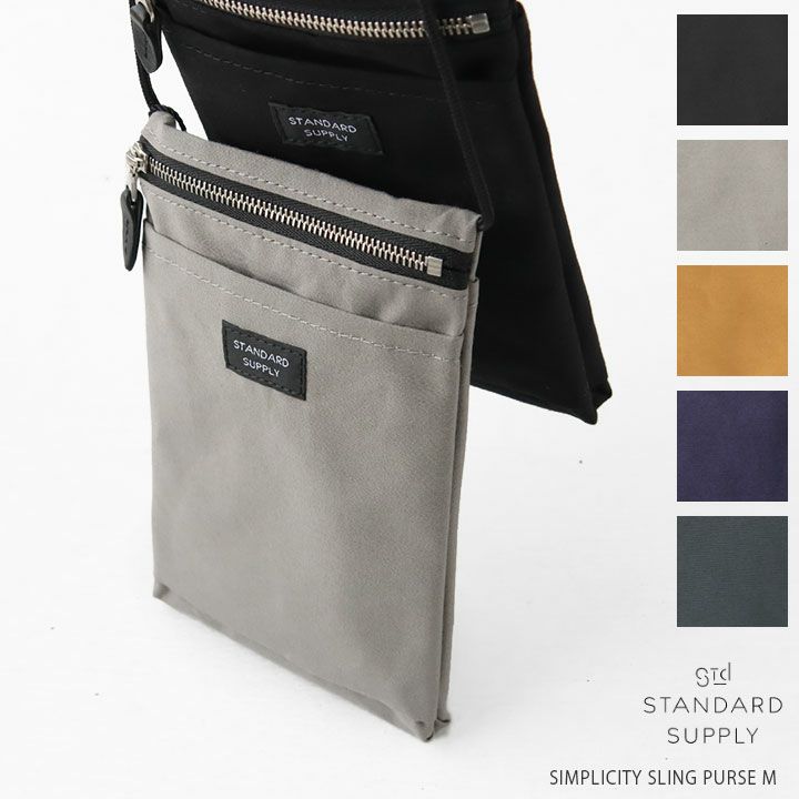 STANDARD SUPPLY(スタンダードサプライ)のスリングパースM。3つのスペースに分かれており、スマホとカードなど必要最低限の携帯品を入れてのお出かけや、ちょっとしたアクセサリー感覚で身につけていただける多機能ミニショルダーです。薄マチで軽量なので、長時間の着用も疲れません。背面のポケットには、フックパーツを付けており、鍵などを下げてパーソナルにカスタマイズも出来ます。フロントポケットには鍵がつけられるキーフックが付いています。