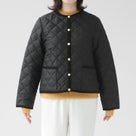 程よいハリのあるキルティングとノーカラーの組み合わせで、すっきりと上品に着られるショート丈ジャケット。撥水性のある高密度ポリエステルとリサイクル中綿を使用し、軽く暖かい仕上がりです。パイピングとゴールドボタンがアクセントになり、日常にも通勤にも洗練されたスタイルを作れます。 もたつきにくい腕周りやスリット入りの裾設計で、動きやすさと美しいシルエットを両立。秋はアウター、真冬はコートインとしてロングシーズン活躍。気温差のある日も頼れる、軽量&撥水の万能アウターです。 【素材】 撥水性のある高密度ポリエステルを使用し、表地・裏地・中綿すべてにリサイクル素材を採用。軽量ながら暖かく、環境にも配慮したエシカルなキルティング素材です。