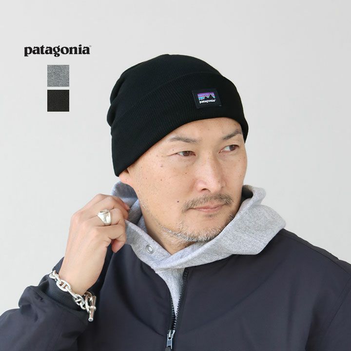 パタゴニアのブランドタグがワンポイントになった、シンプルなニット帽。
