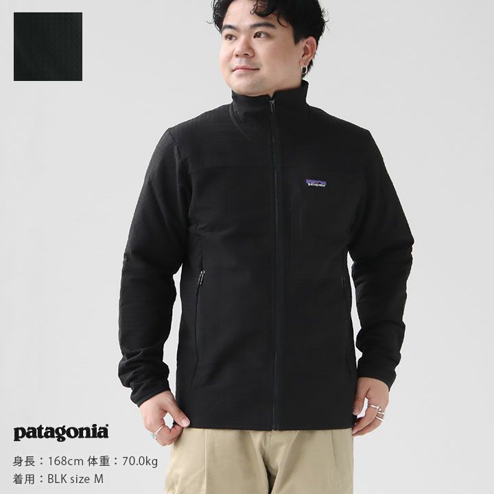 patagonia(パタゴニア)のメンズ・R2テックフェイス・ジャケット。保温性と通気性のあるハイロフトのダブル織り素材。丈夫でしわになりにくく、表面は水分を弾くPFCフリーDWR(耐久性撥水)加工が施されているため、雨や雪など悪天候の日にも快適に着用することができます。フルレングスのフロントジッパーは、ぴったりと閉じる縁取り付きのジッパーガレージを備え、首やあごへの肌当たりもソフト。2つのジッパー式ハンドウォーマーポケットは登山用のハーネスやバックパックの着用に対応する配置。左胸にはアイコニックなジッパー式チェストポケット、内側には2つのメッシュポケットを備えた収納力も魅力。すっきりと快適にフィットするストレッチニットの袖口、部分的に伸縮性の縁取りを施した裾によりレイヤリングしやすく、単体でアウターとしてはもちろん、ミドルレイヤーとしても着用できる一着。秋口から春先まで長いシーズン着回せるジャケットです。フェアトレード・サーティファイドの縫製を採用。着用モデル:身長168cm/体重70kg(Mサイズ着用)