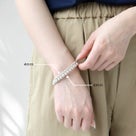 私の手首まわりは一番細い部分で15cmです。このブレスレットは少し余裕があり、手を動かすと軽く揺れるくらいの“遊び”があります。程よくゆとりがある着け心地なので、窮屈さは感じません。露出が増えるこれからの季節には、手元を華やかに演出してくれるアイテムとしておすすめしたいアイテムです!
