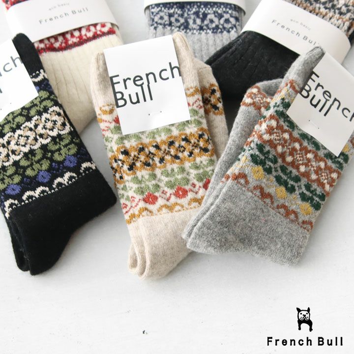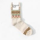 FRENCH BULL(フレンチブル)のツヴィストソックス。スウェーデンの伝統的なツヴィスト刺繍をイメージした柄を、ノスタルジックな配色に仕上げたソックスです。リサイクルウールナイロン糸をベースに、程よい厚みに編み立てられています。ナチュラルなコーディネートのポイントになる1足です。(リサイクルウール使用)